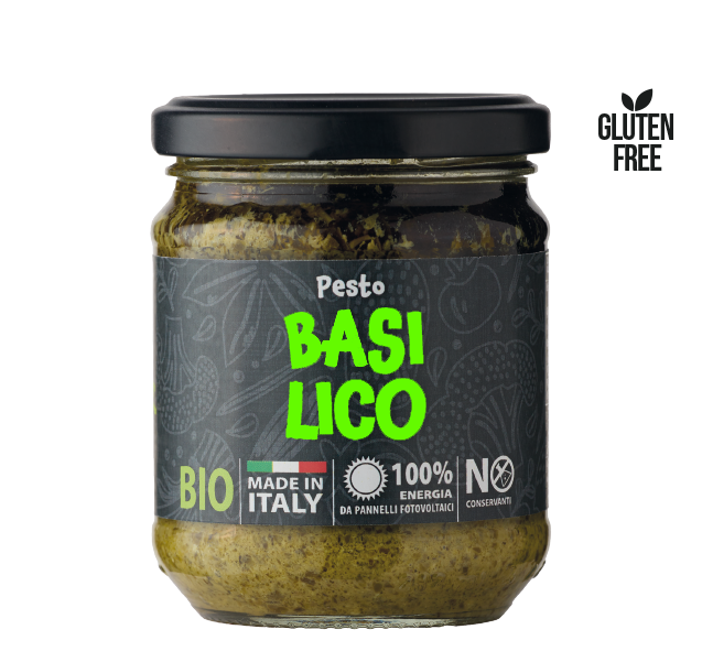 Ingrediente: Busuioc * 45%, ulei de măsline extravirgin * 15%, ulei de floarea soarelui, suc de lămâie, Parmigiano Reggiano (lapte, sare, cheag), caju, sare, muguride pin.